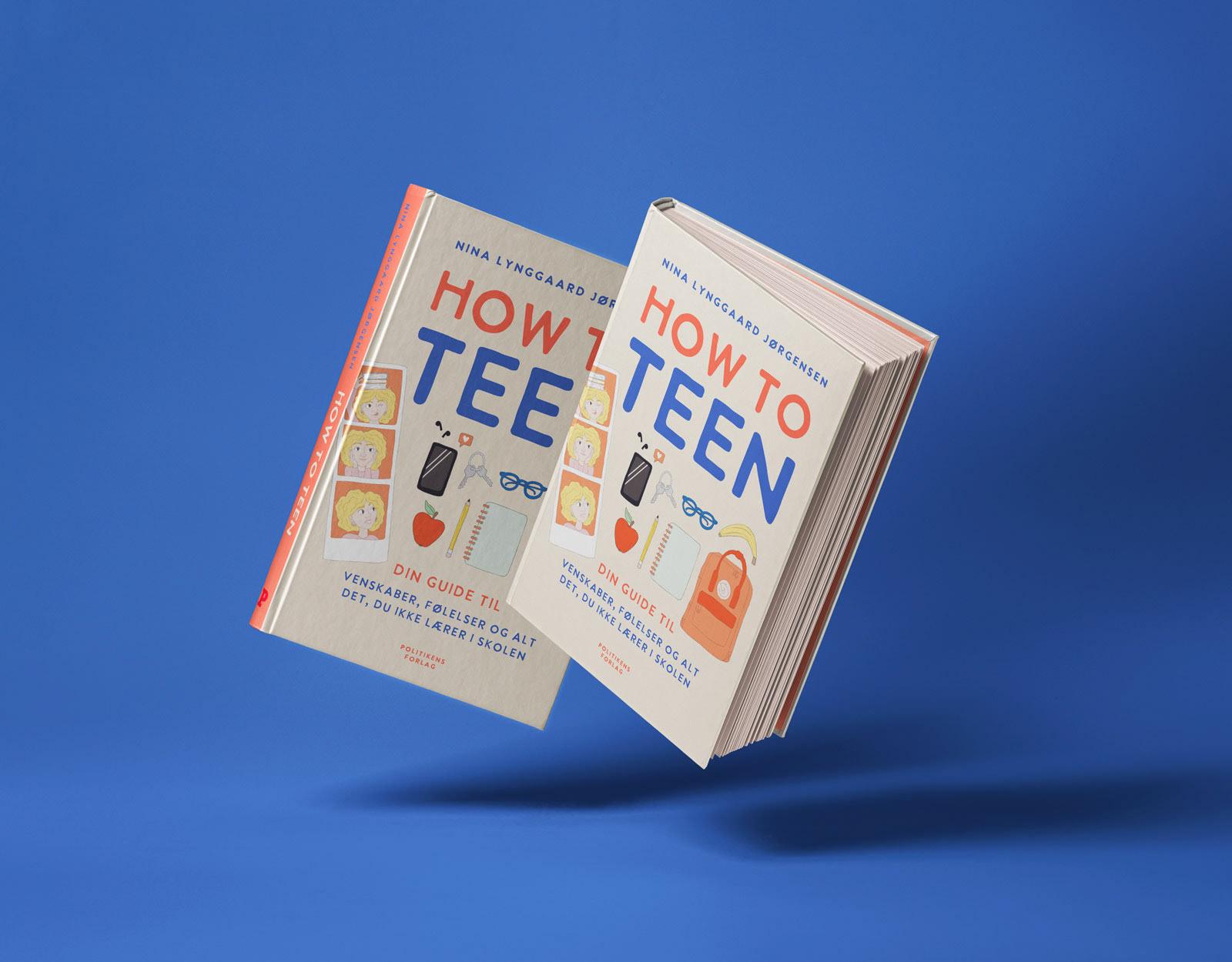Omslag, layout, sats og illustration af bogen How to teen af Nina Lynggaard. For Politikens Forlag. 2023.