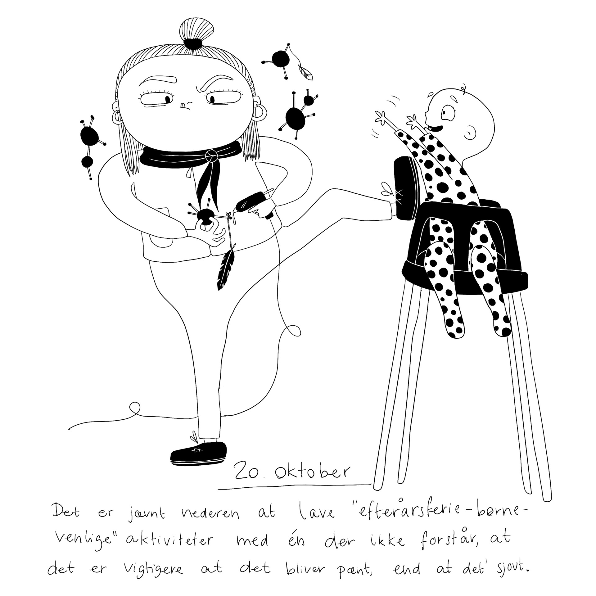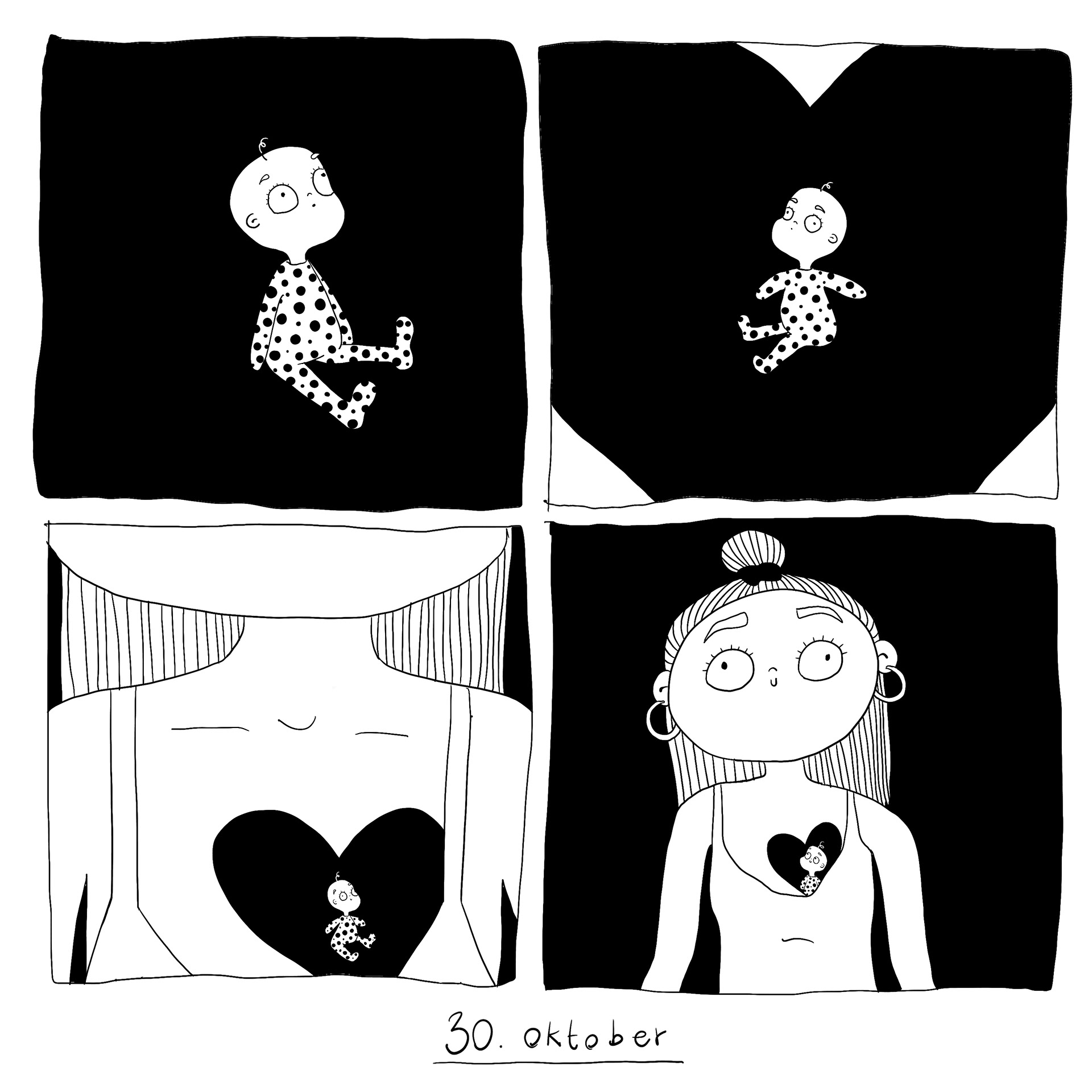 Inktober går ud på, at man hver dag i oktober tegner en ny tegning og deler på sociale medier, f.eks. Instagram. De officielle regler har et tema for hver dag, men jeg har brugt min dagligdag som inspiration - som gravid, mor til ét barn, og mor siden hen mor til to børn. Nedenfor er et udvalg af tegninger fra de seneste 4 år i vilkårlig rækkefølge.