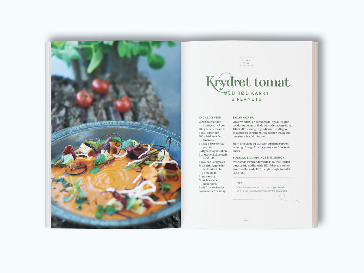 Design og layout af den veganske kogebog, 'Simple supper', af Catherine Daverne. Udkommet på Muusmann Forlag i 2021.